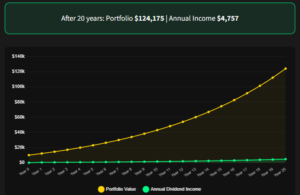 Simulate how reinvesting dividends (DRIP) + consistent dividend growth creates an exponential snowball of passive income. Project your future dividend stream over 10–30 years.